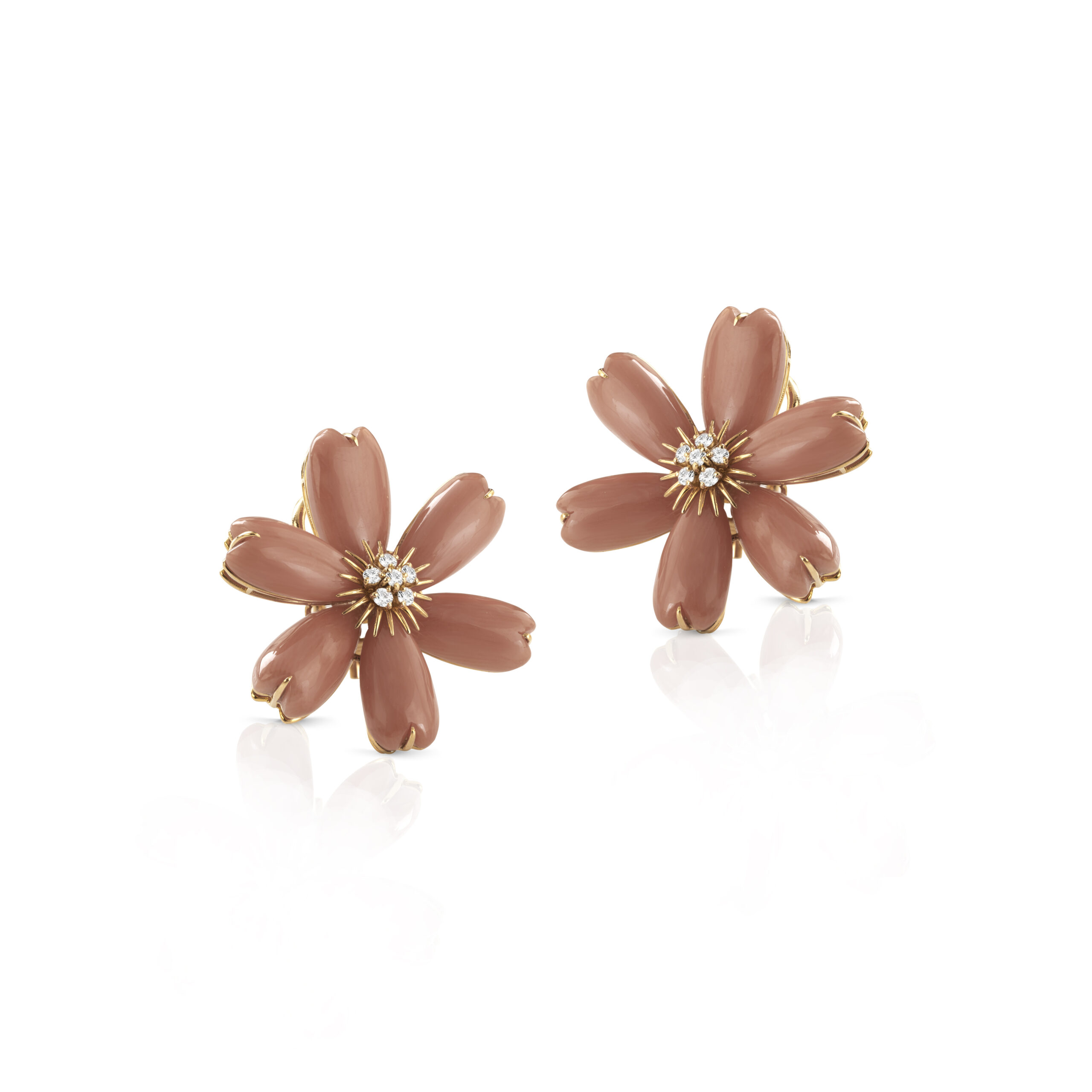 18kt 金耳环,镶嵌橙色“cerasuolo”珊瑚和 0.25 克拉钻石。