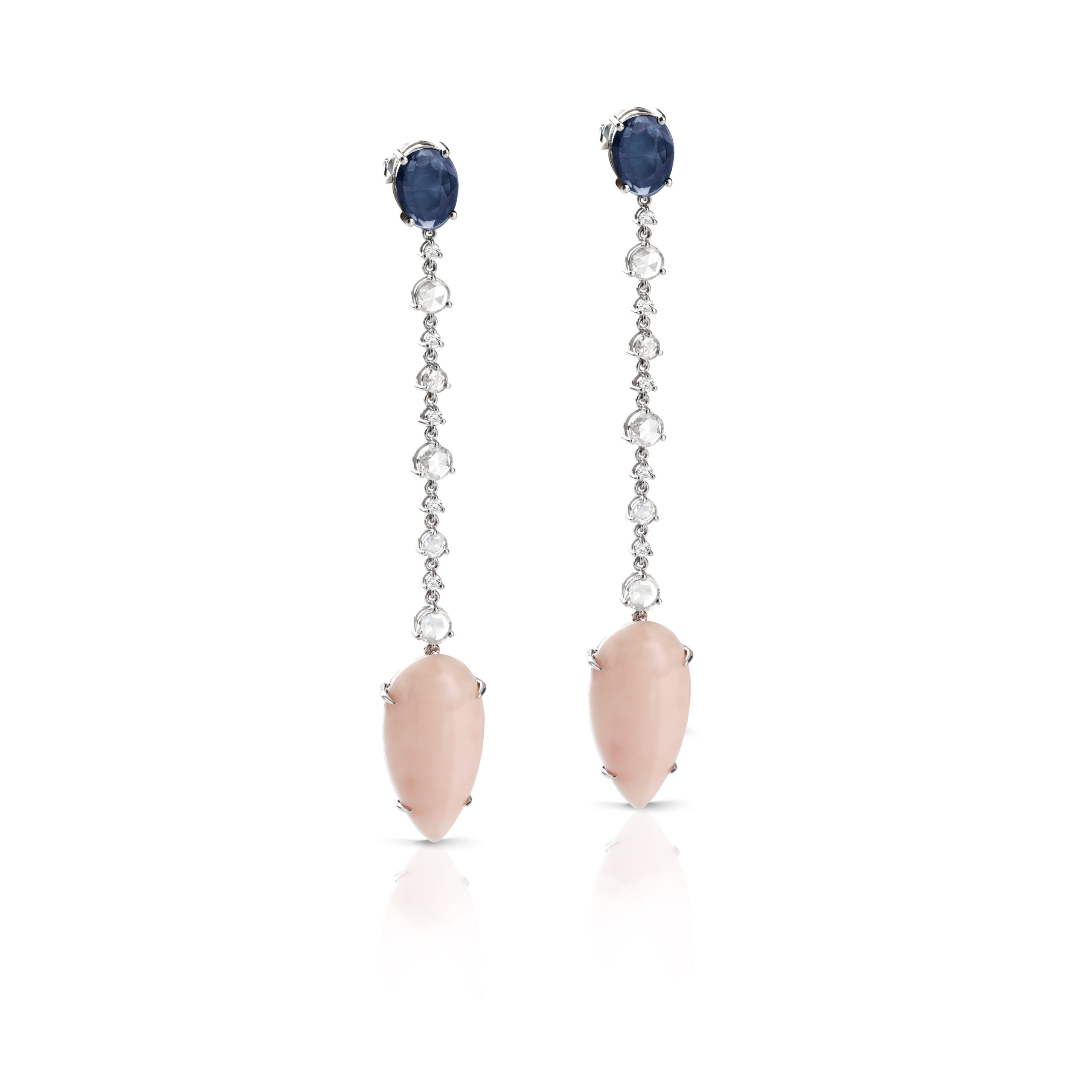 18kt 金耳环,镶嵌粉红珊瑚、1.91kt 尖晶石和 1.66kt 钻石
