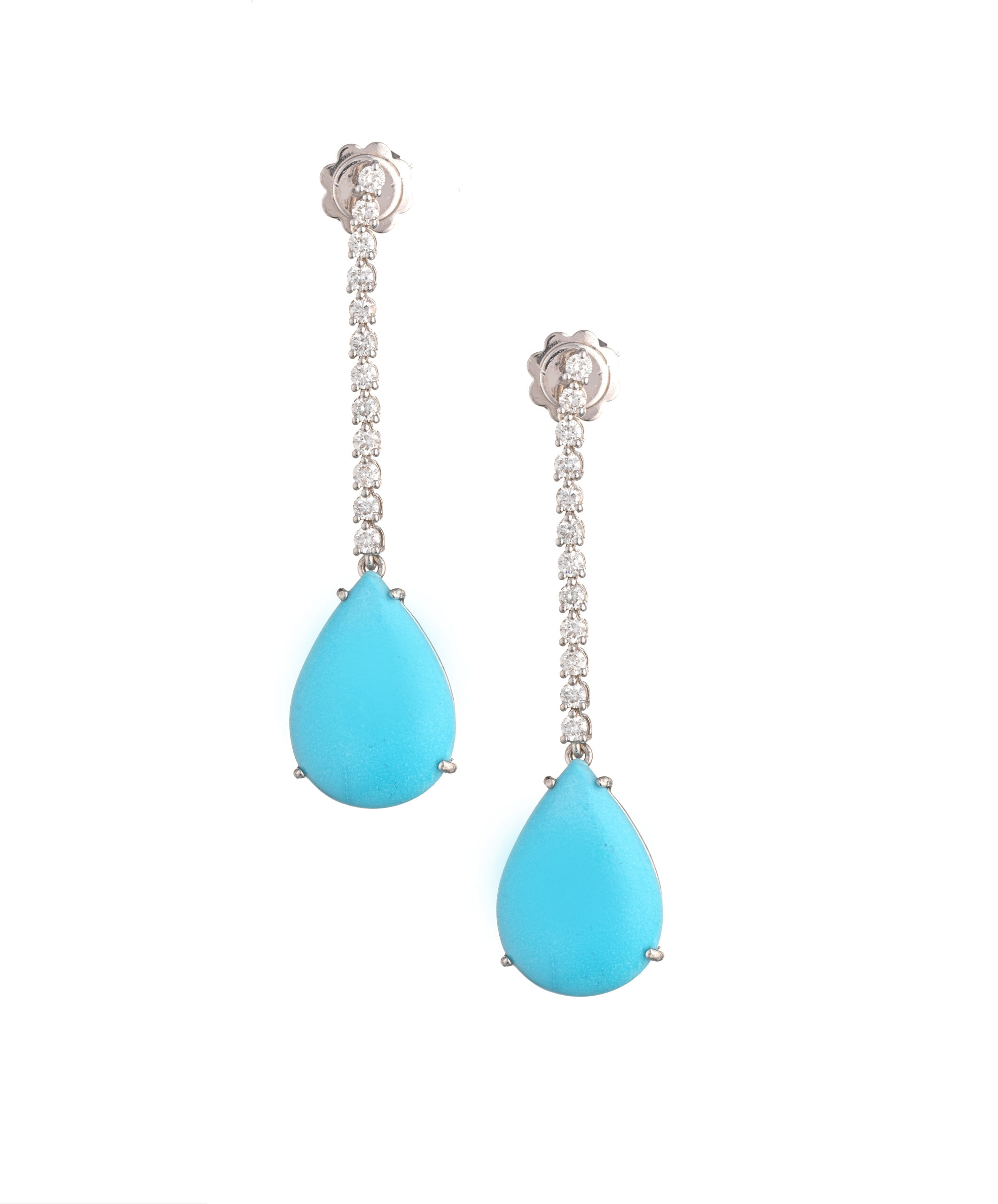 18kt 金耳环,镶嵌天然绿松石和 0.67 克拉钻石