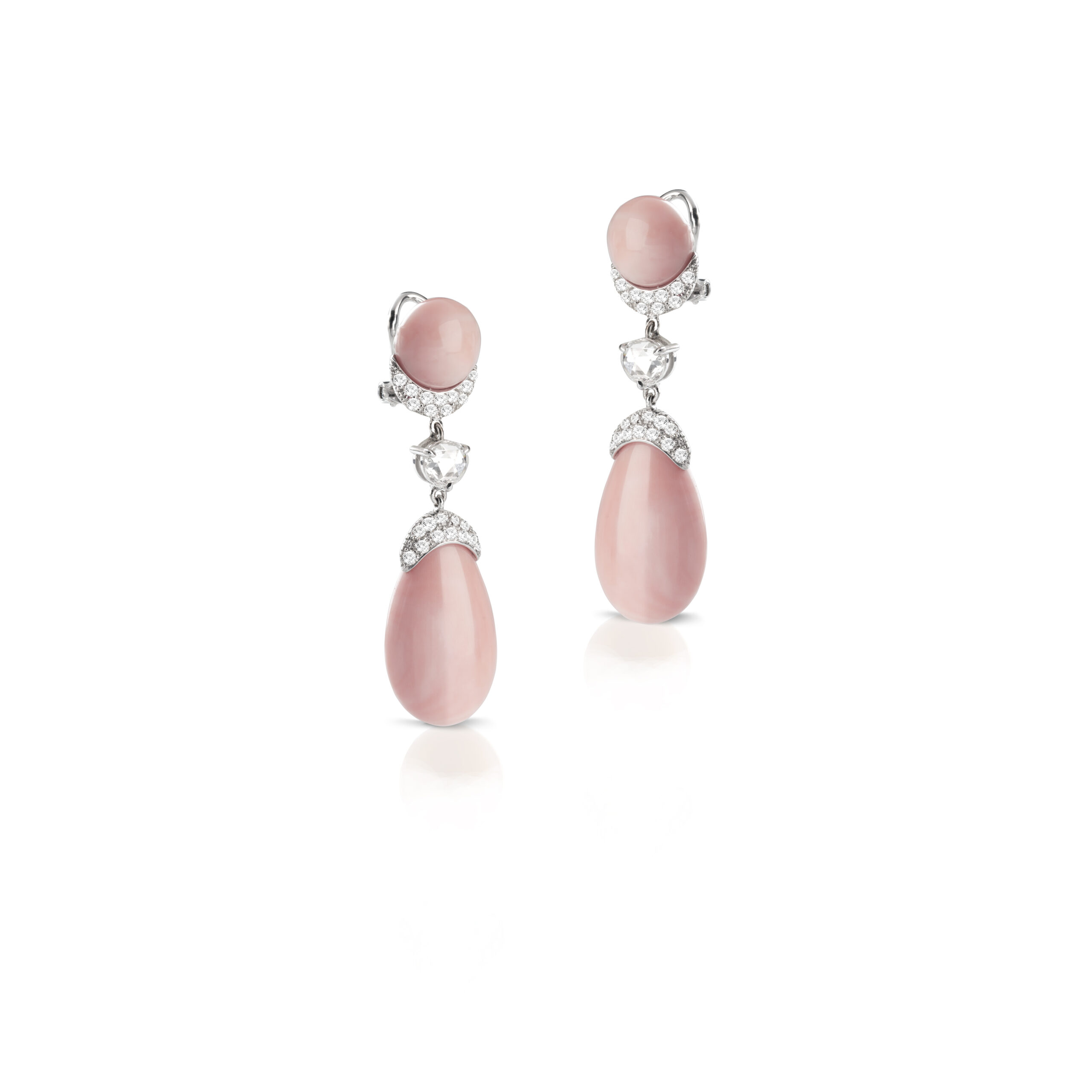 Orecchini in oro 18 kt, corallo rosa e diamanti