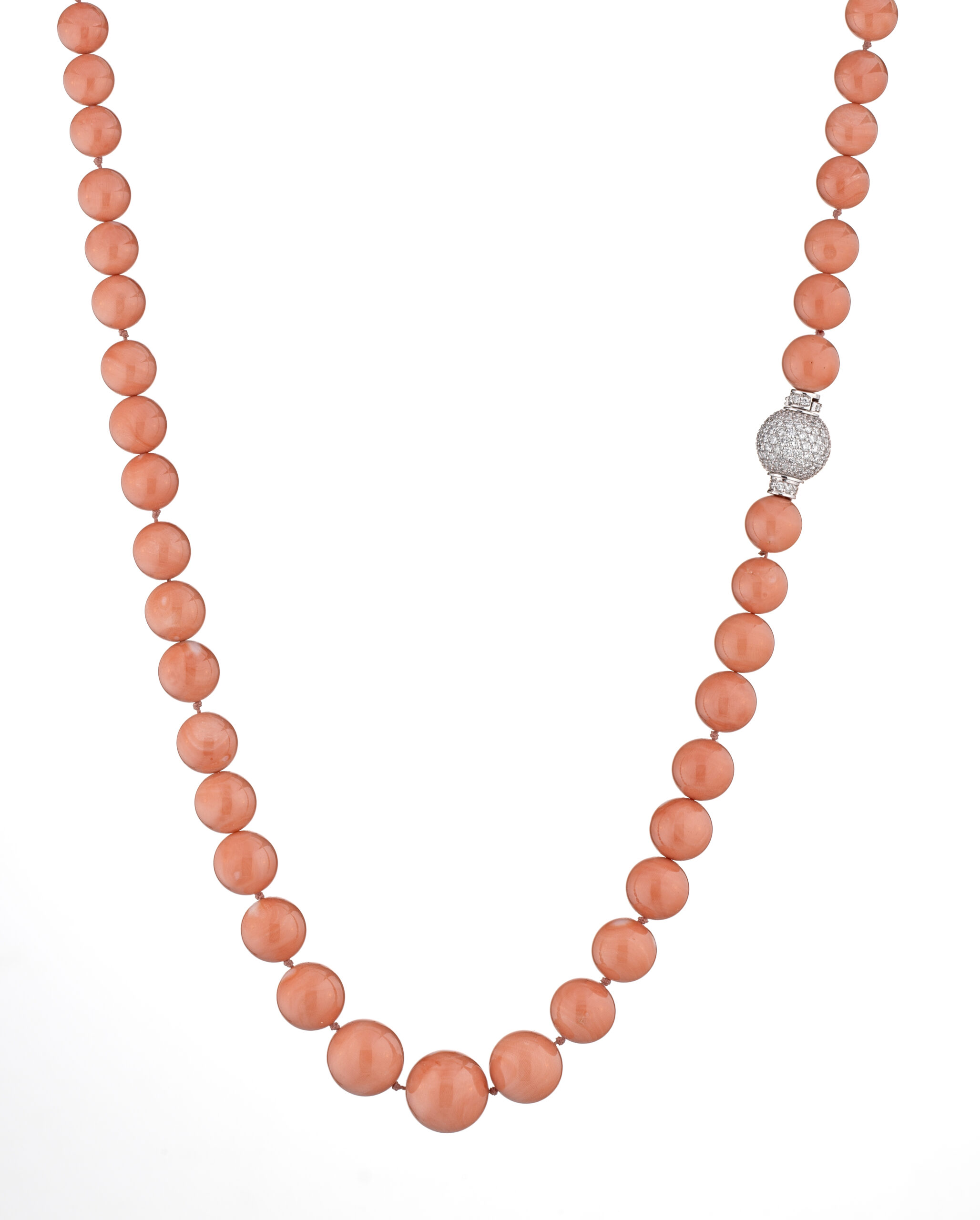 Collana in corallo rosa “pelle d’angelo” con chiusura in oro 18 kt e diamanti kt. 3,78