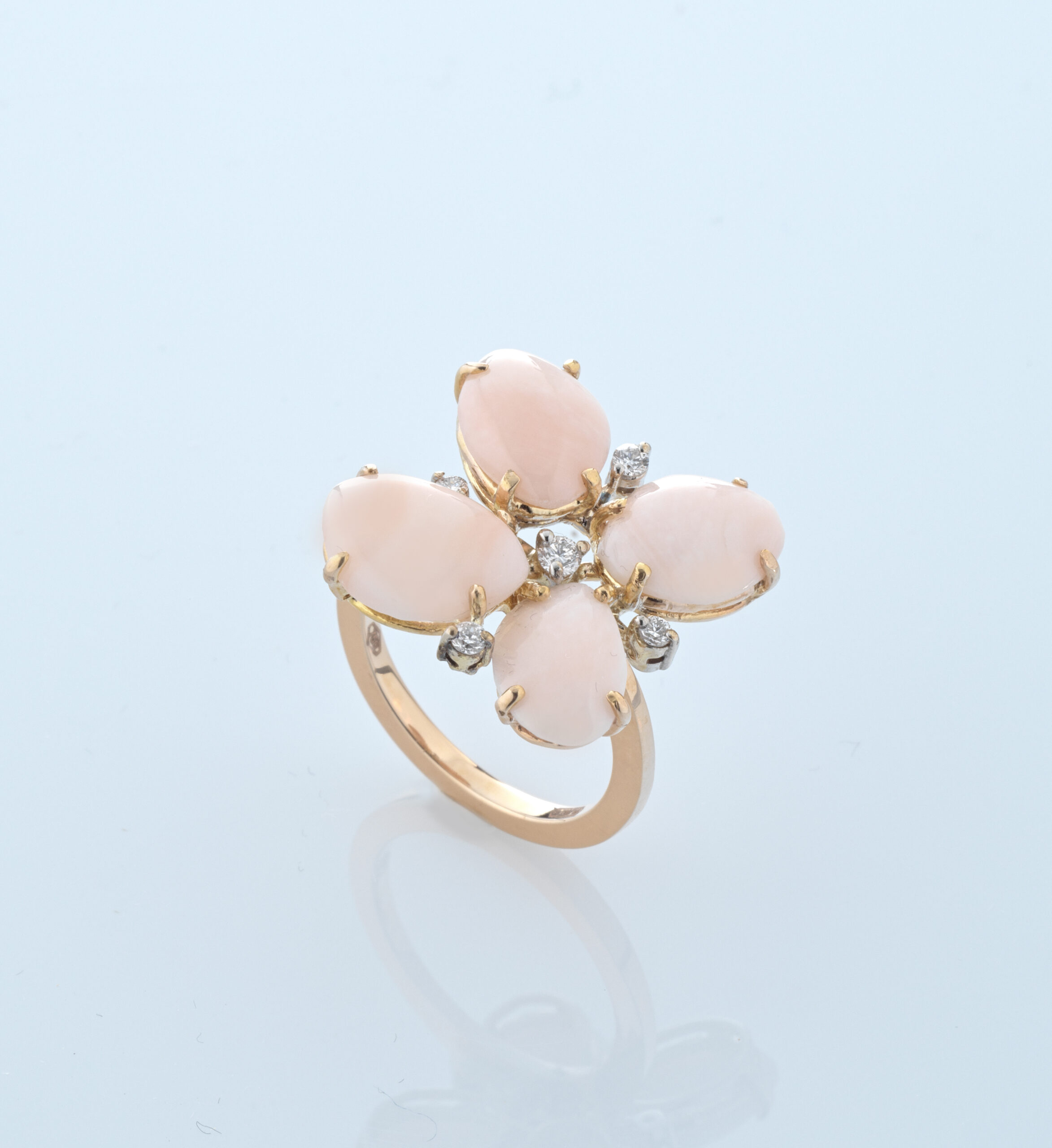 Anello in oro 18 kt con corallo rosa e diamanti kt. 0,26