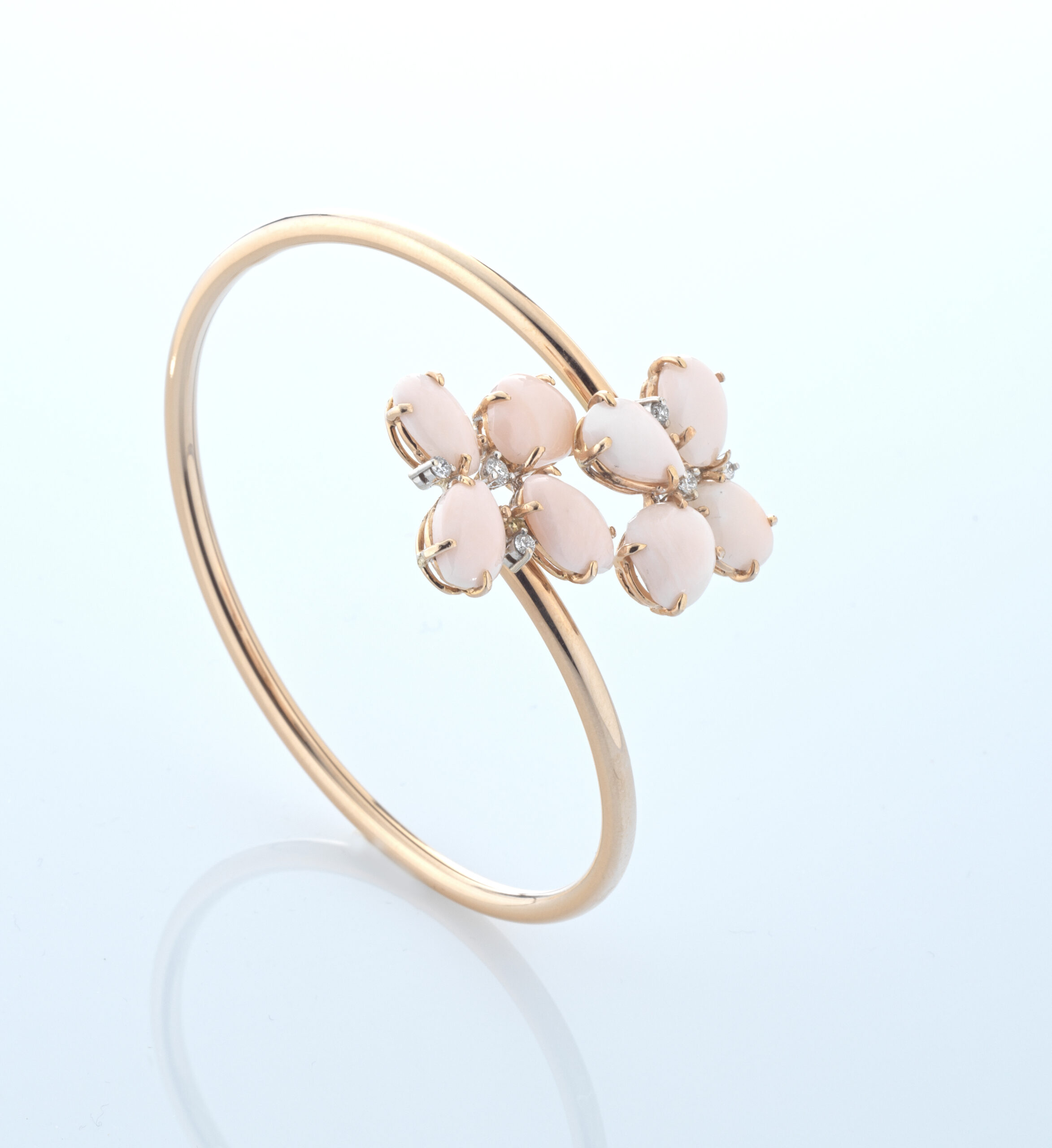Bracciale in oro 18 kt, corallo rosa e diamanti