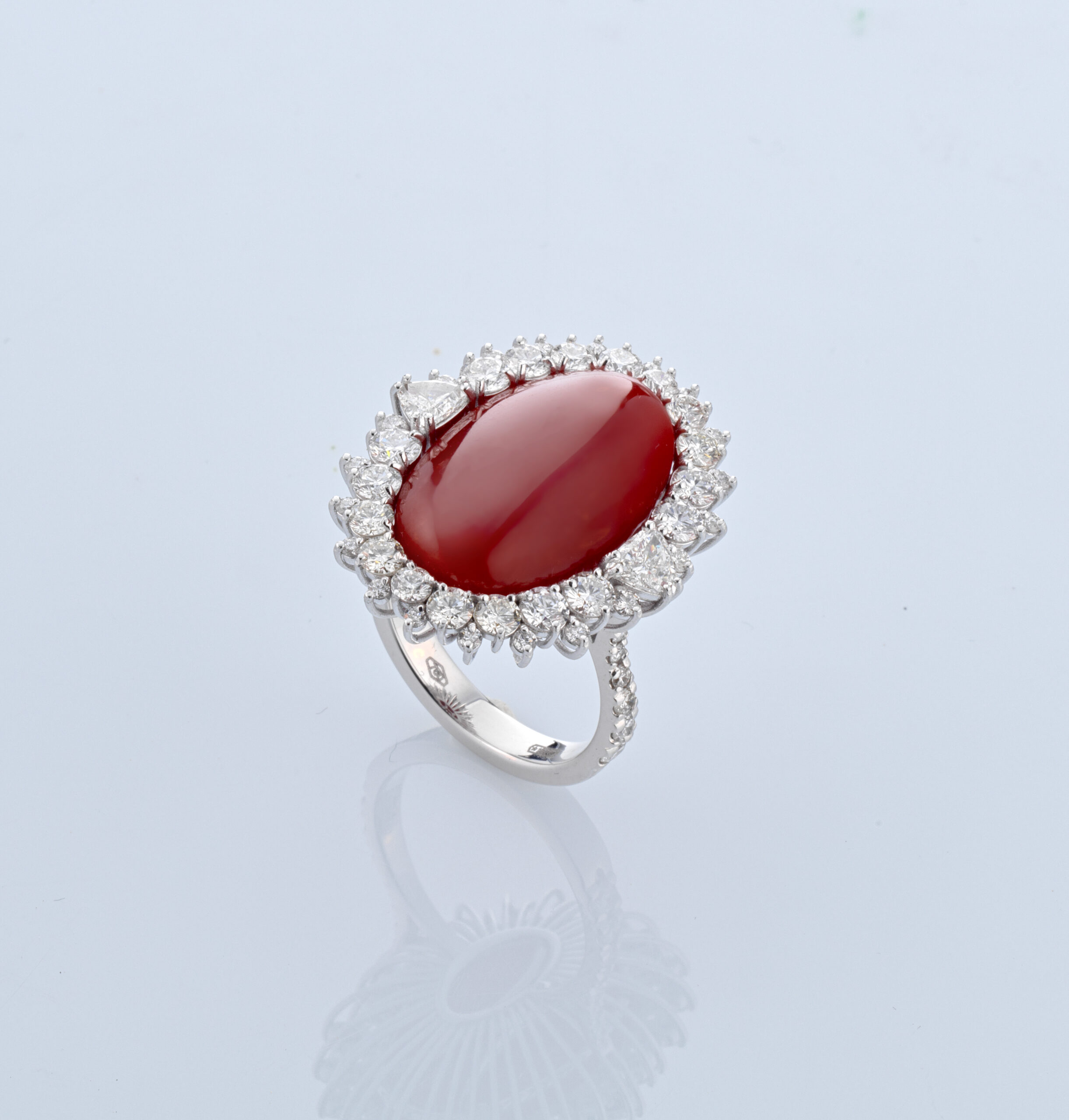 Anello in oro 18 kt con corallo rosso e diamanti kt. 1,36