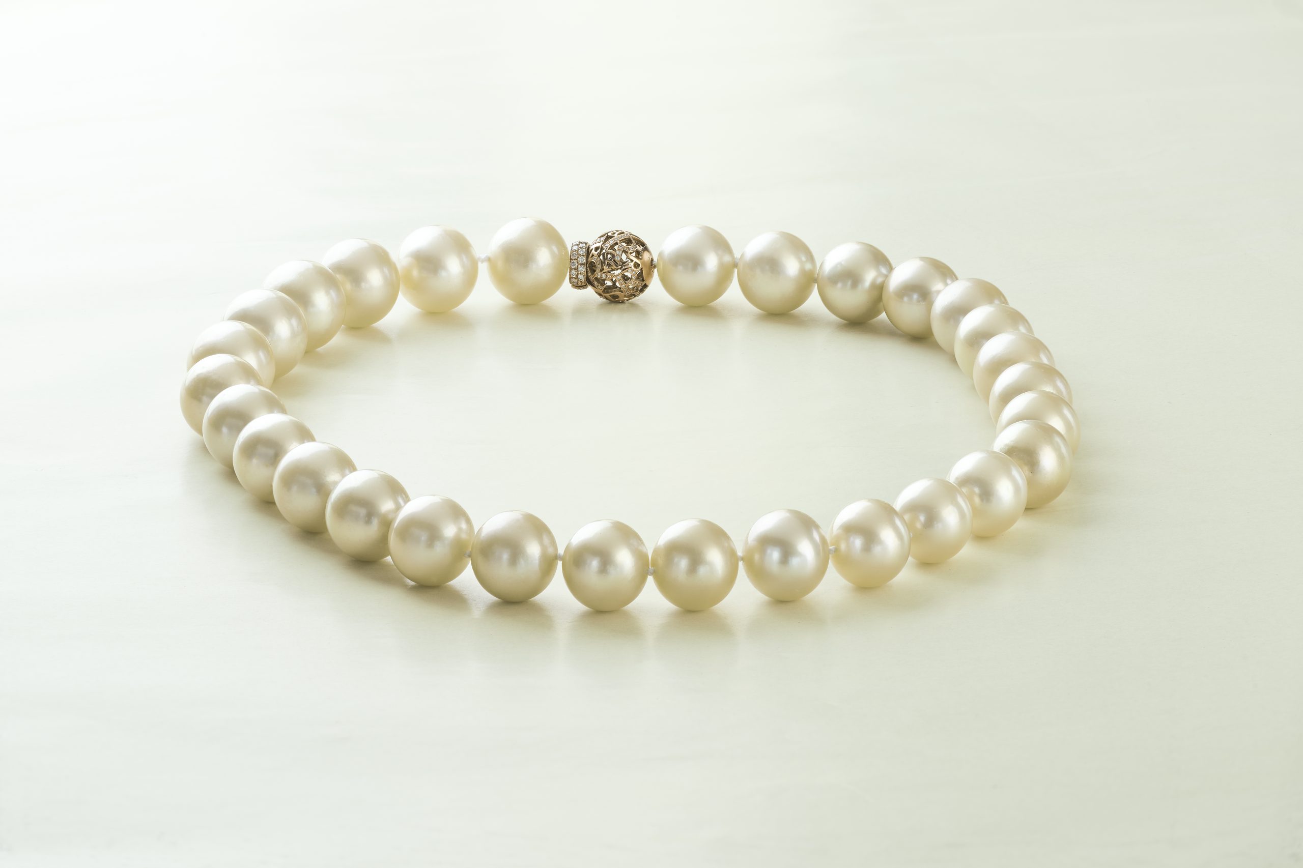 Collana di perle south sea con chiusura in oro 18 kt e diamanti kt. 0,82