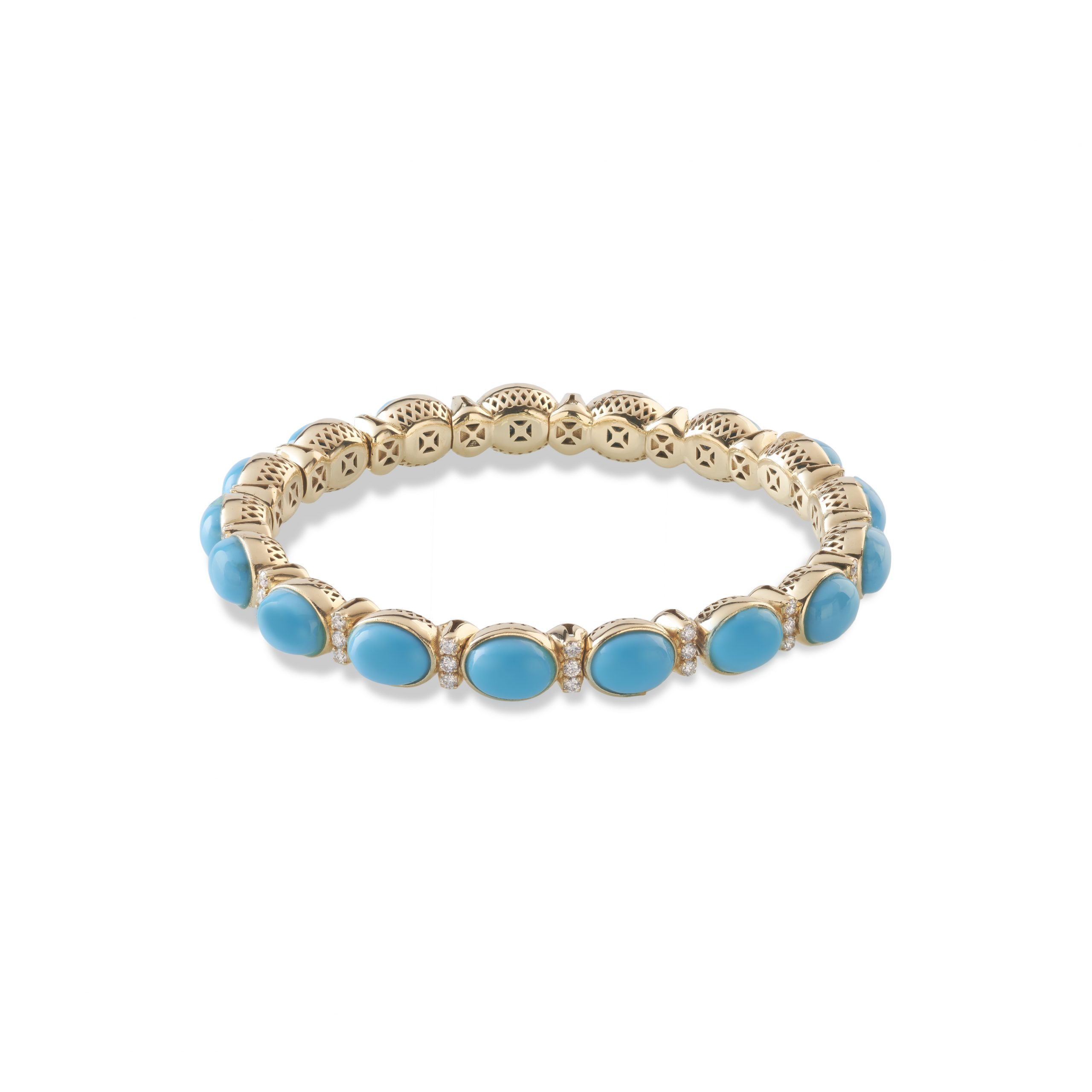 Bracciale elastico in oro 18 kt elastico, turchese naturale e diamanti