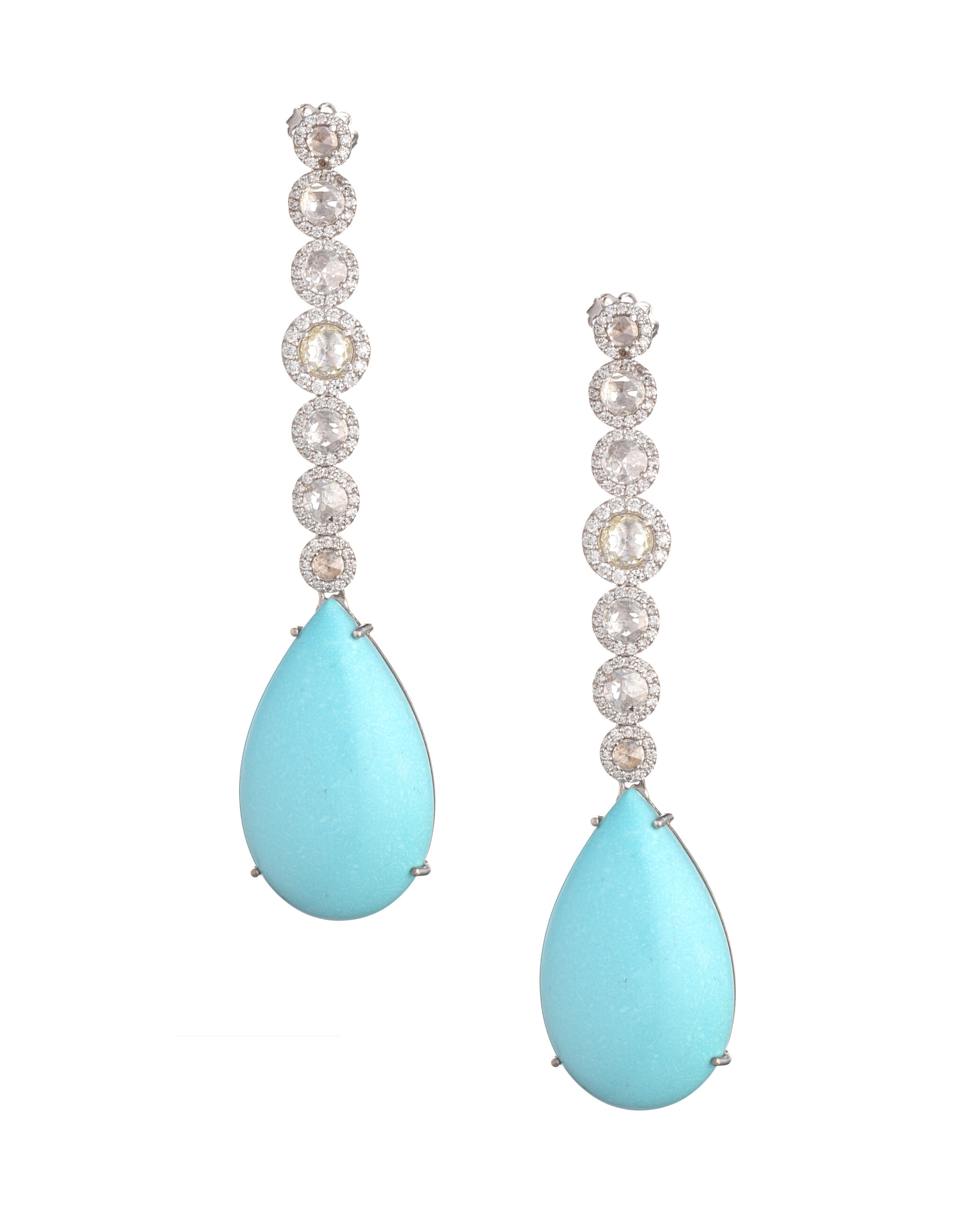 Orecchini in oro 18 kt con turchese naturale e diamanti kt. 4,94