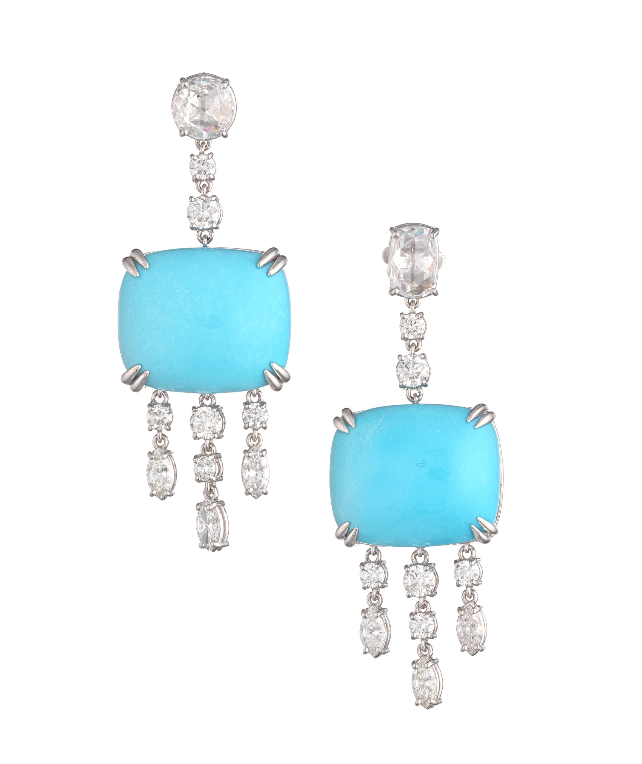 Orecchini in oro 18 kt con turchese naturale e diamanti kt. 4,45