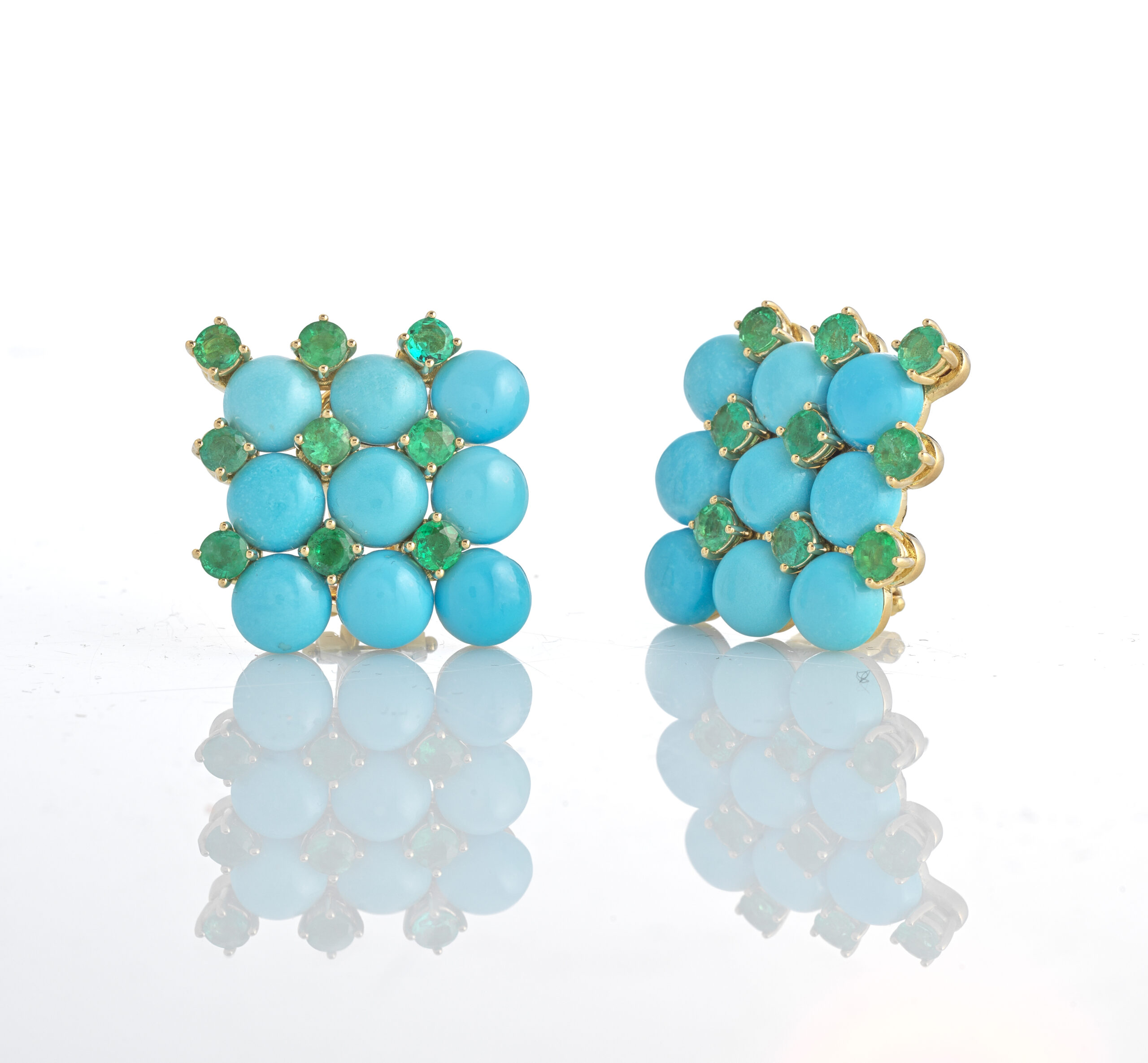 Orecchini in oro 18 kt, turchese e smeraldi