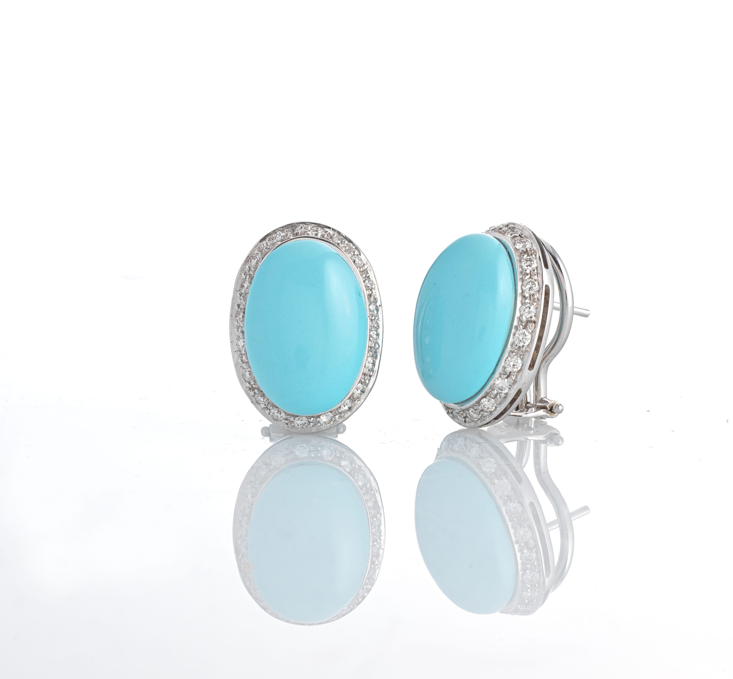 Orecchini in oro 18 kt con turchese naturale e diamanti kt. 1,10
