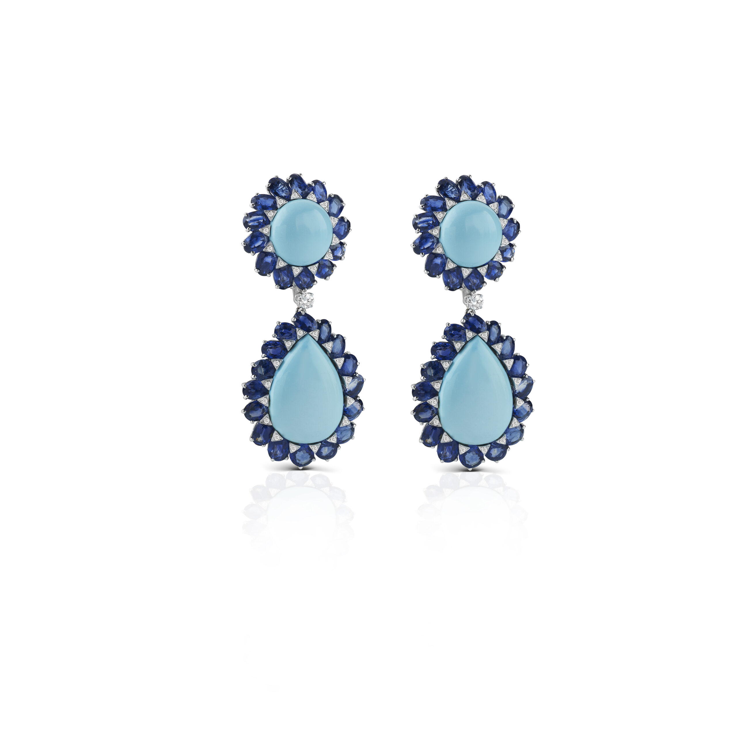 Orecchini in oro 18 kt, turchese, zaffiri e diamanti
