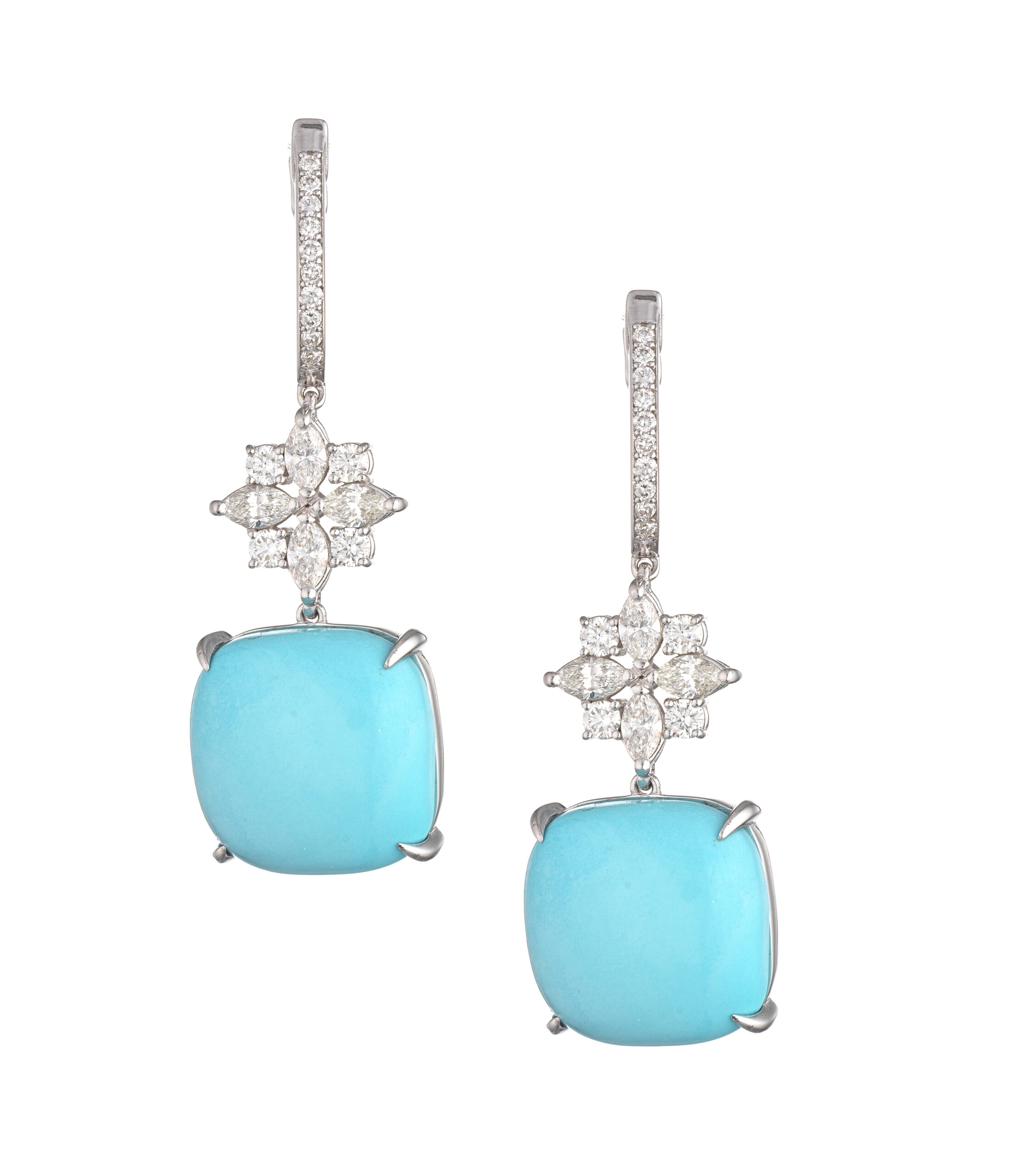 Orecchini in oro 18 kt, turchese e diamanti