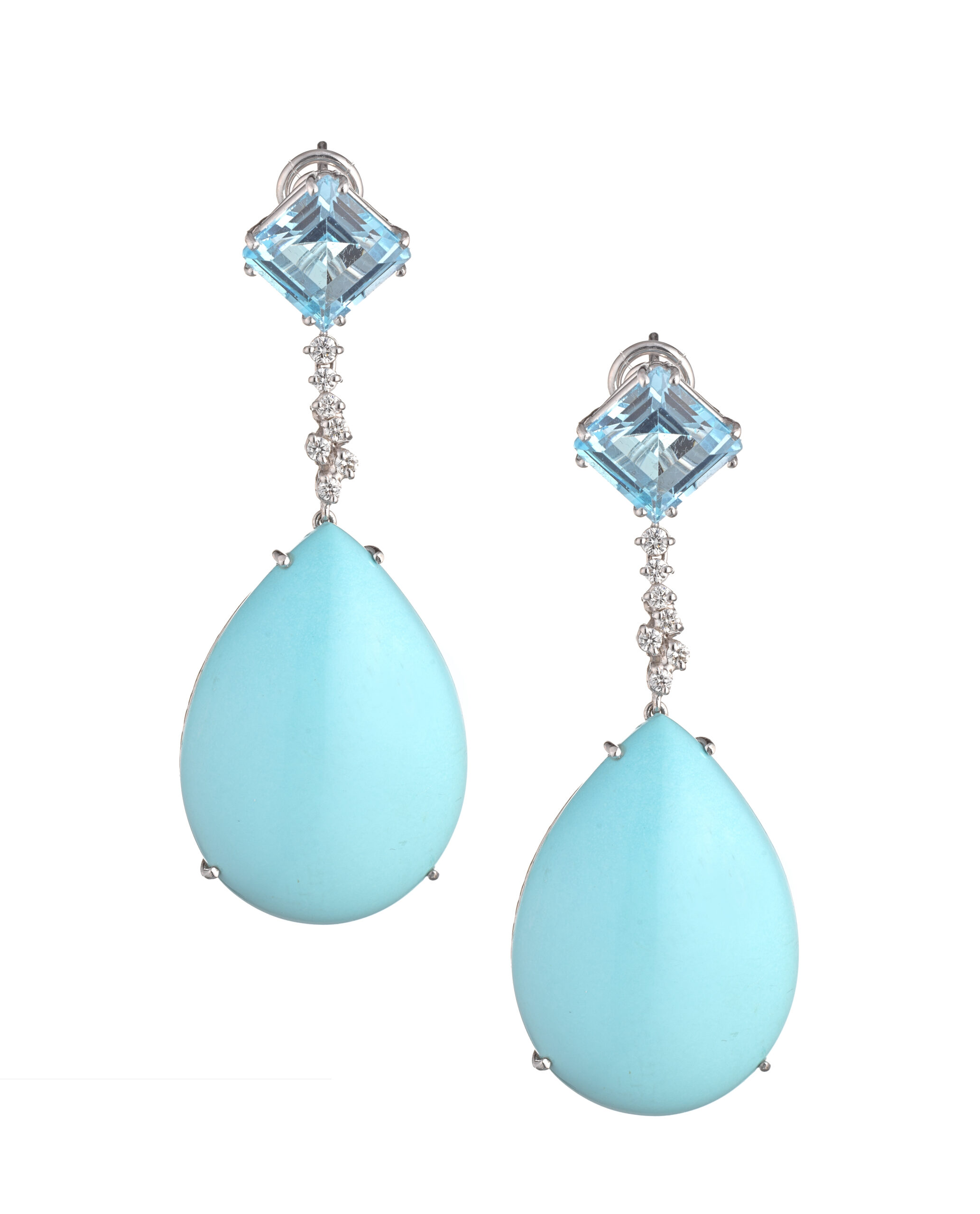 Orecchini in oro 18 kt, turchese, topazi e diamanti